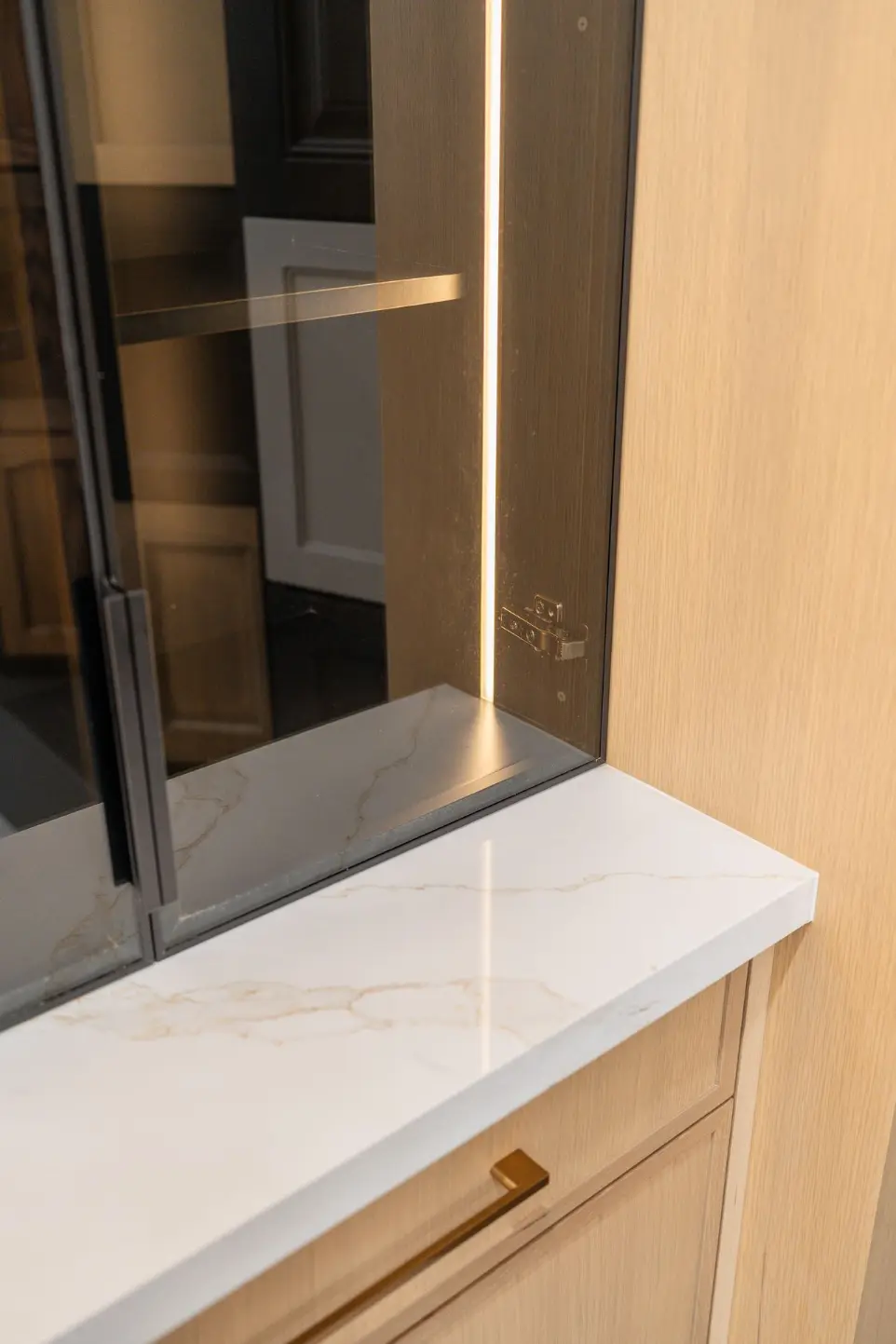 Crafted to showcase both precision and artistry, this millwork showroom reflects a warm modern aesthetic rooted in craftsmanship and material clarity. ABN Design led the full design and build, shaping a space that not only displays millwork, but celebrates it—each vignette thoughtfully composed to highlight texture, contrast, and the beauty of bespoke detailing.