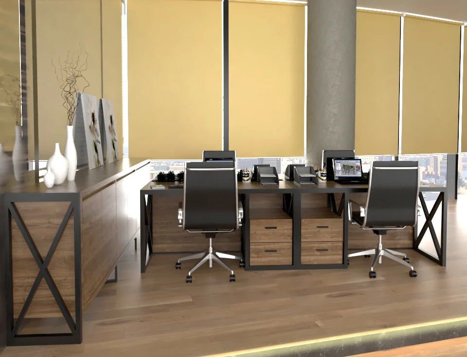 Executive desks and meeting zones are arranged for efficiency, communication, and comfort, allowing for both focused work and collaborative discussions. Every piece is designed to enhance usability while maintaining a cohesive design language.