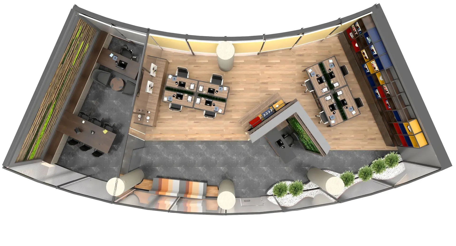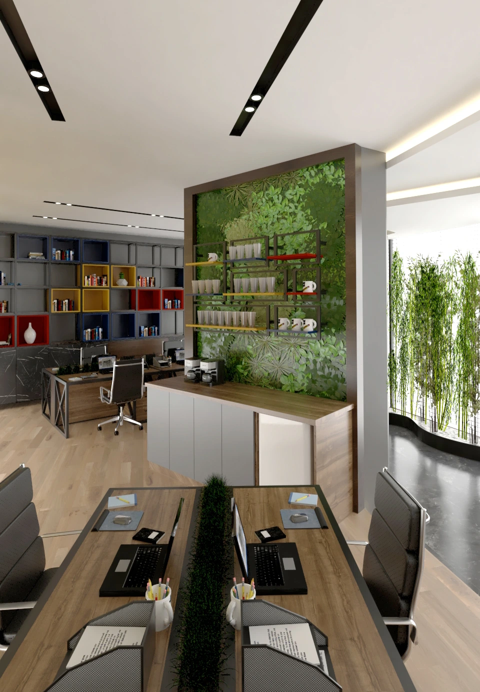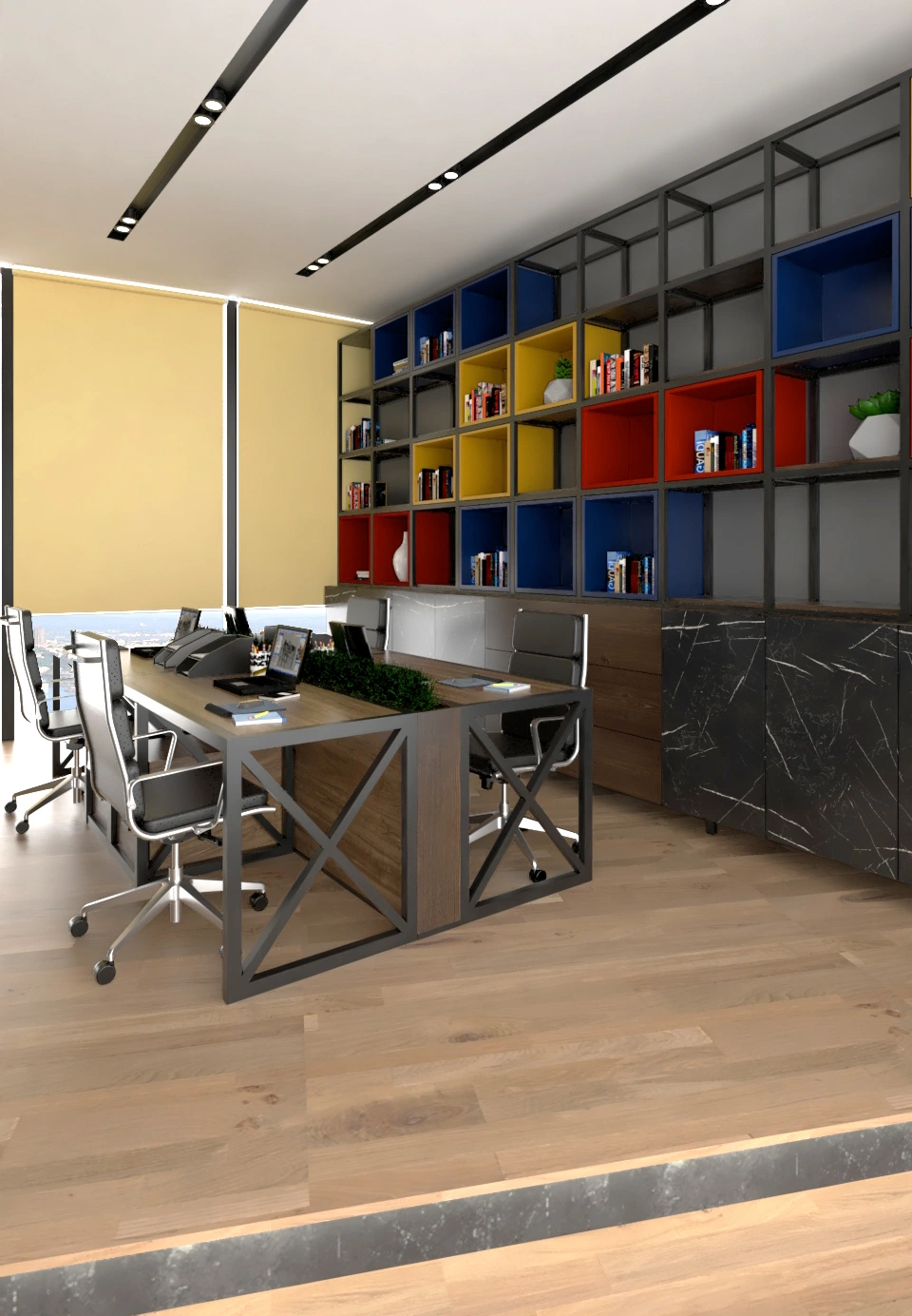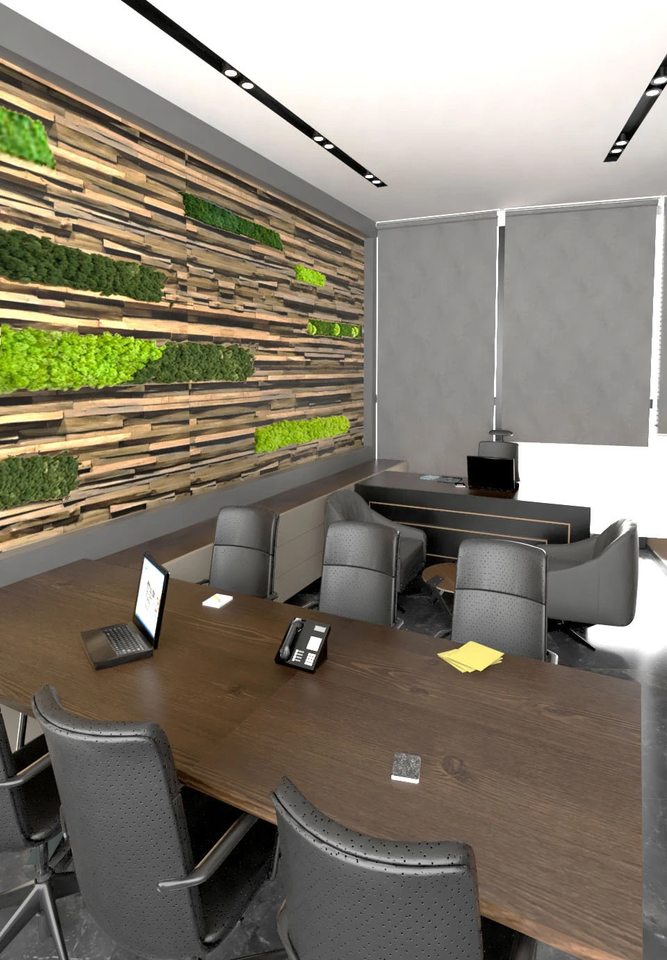 ABN Design envisioned a modern office concept that balances productivity, comfort, and aesthetic refinement. The design prioritizes a harmonious interplay of natural textures and functional zoning, ensuring that every area supports the diverse needs of a dynamic workspace. From private office to collaborative zones, the layout is crafted to encourage focus, creativity, and ease of movement.