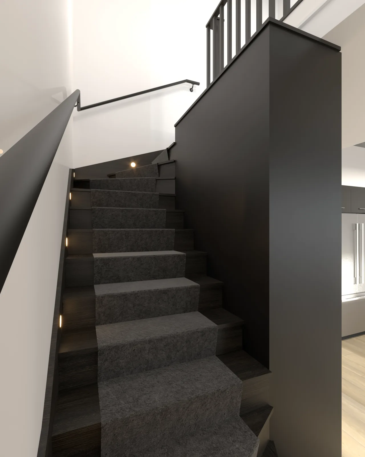 The interior design vision for this two-storey Queen St. apartment reimagines urban living through a refined and highly intentional lens. ABN Design developed a cohesive concept that harmonizes spatial clarity, material richness, and elevated comfort, shaping every corner of the home with purpose and artistry. From the earliest stages of space planning to the final material selections and custom detailing, each element was designed to create a fluid, engaging, and beautifully personal environment.